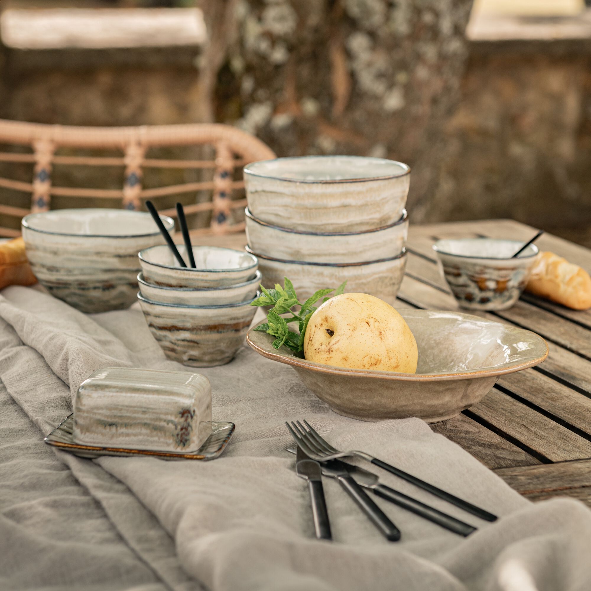 COLORIDO - Service petit-déjeuner en grès réactif - gris