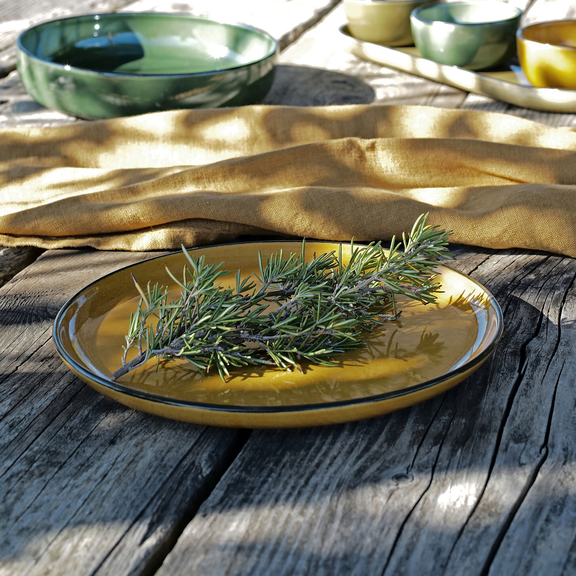 OLIVA - Assiette à dessert en grès D22,2cm - jaune