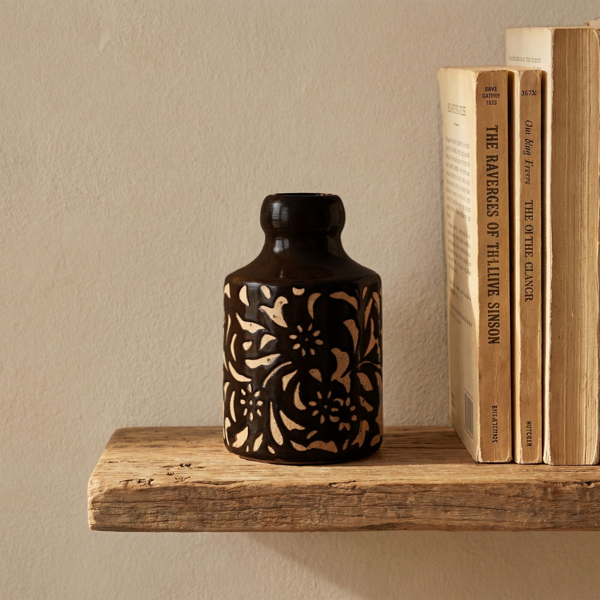 ARCENS - Vase en grès motif végétal H12cm - marron