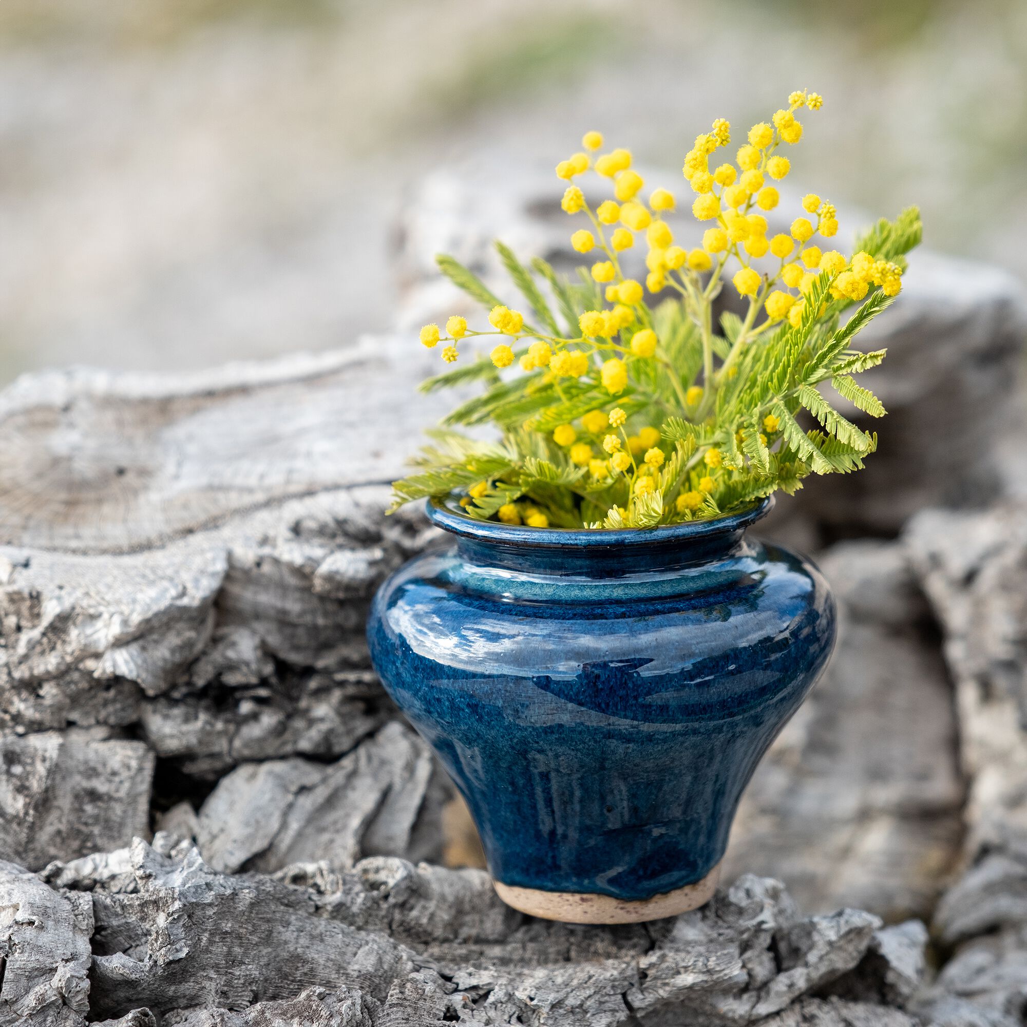 RELLON - Vase classique en faïence H8,5cm - bleu