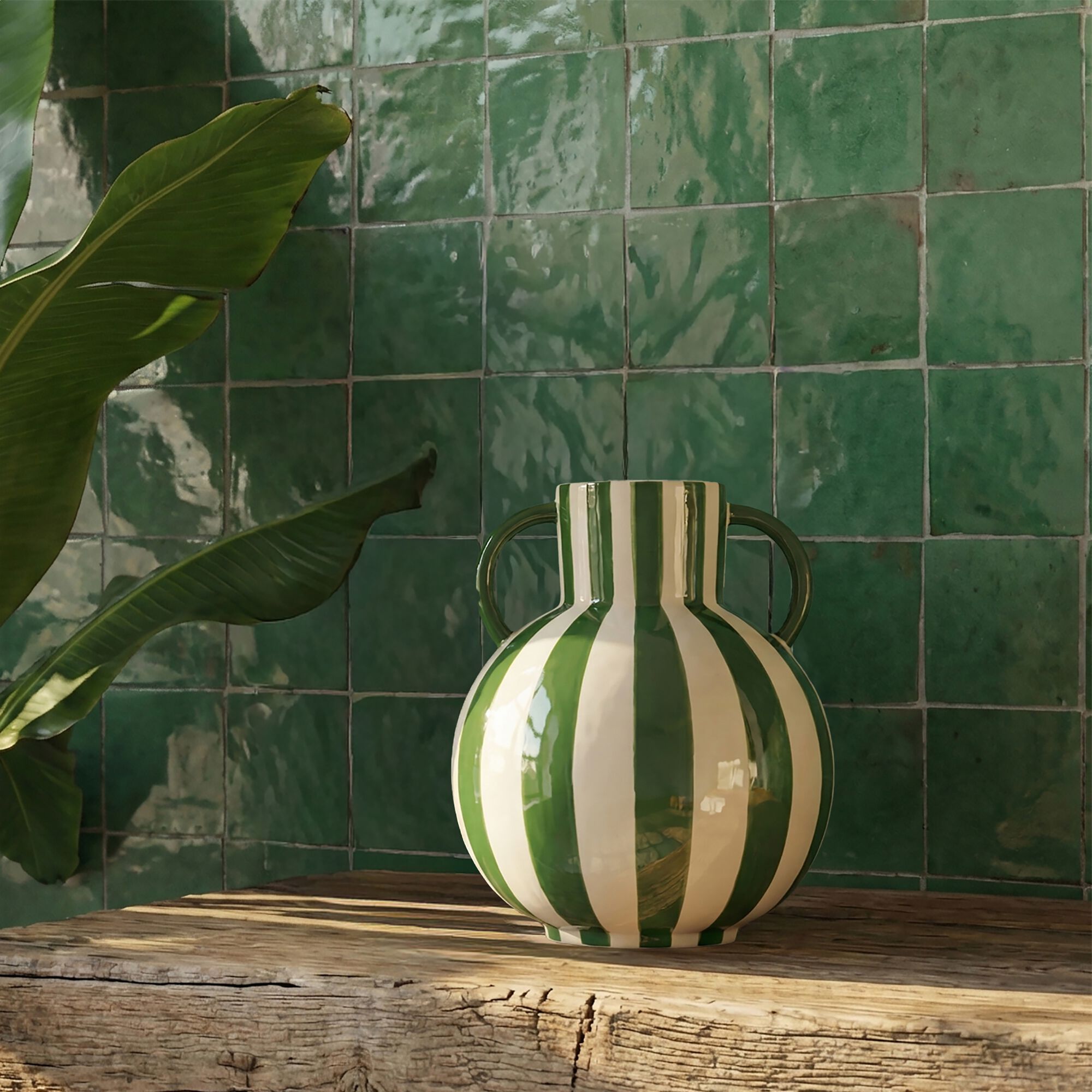 SOMLA - Vase déco en faïence H13cm - vert