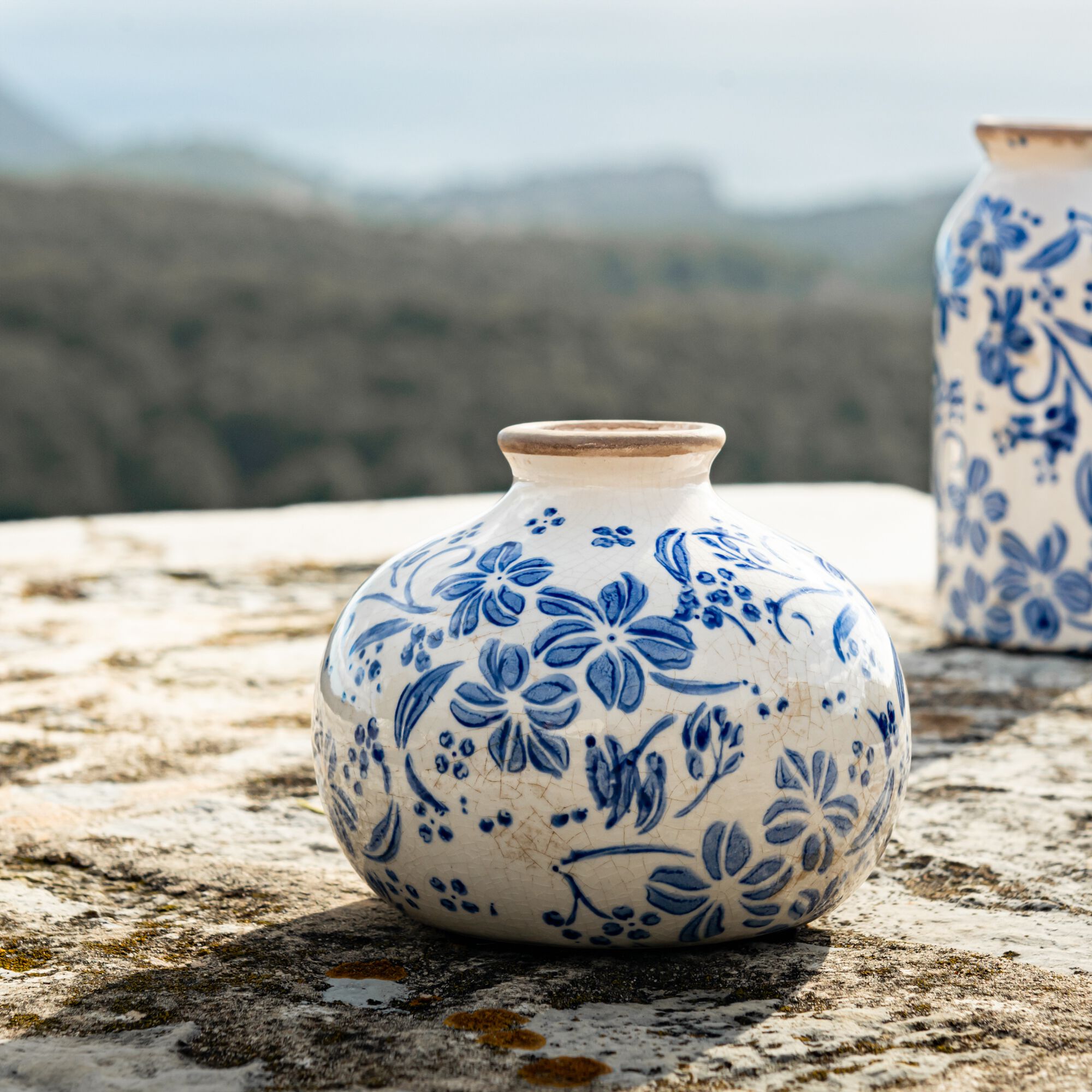 SOMLA - Vase déco en faïence H13cm - bleu