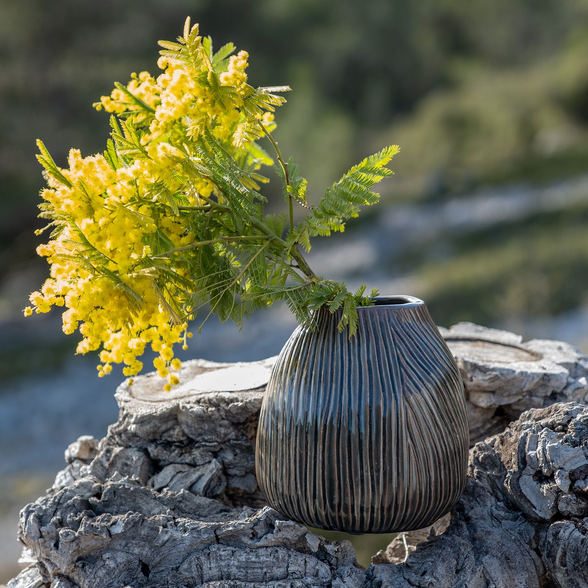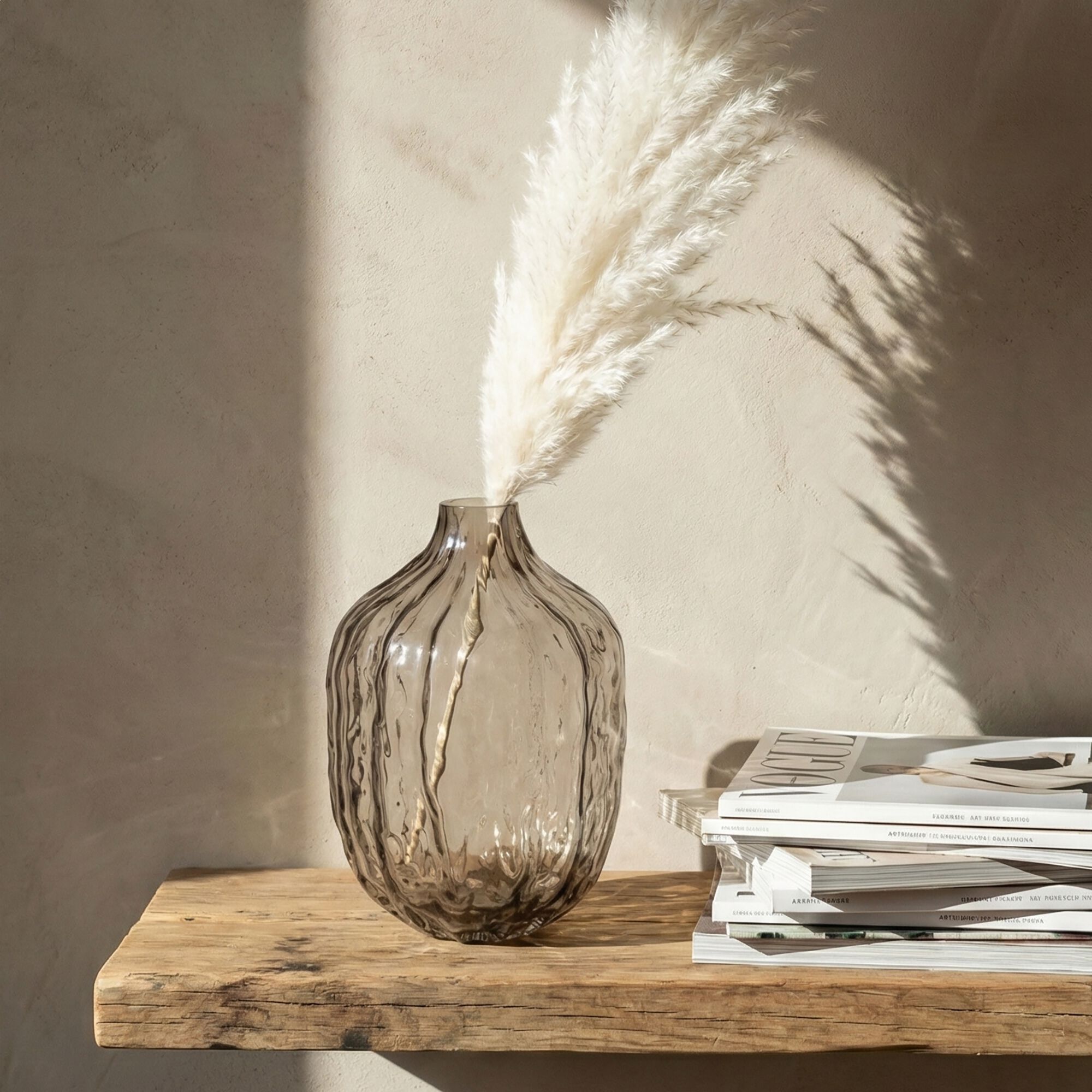 AREZZO - Vase en verre et bois - gris H23,5cm