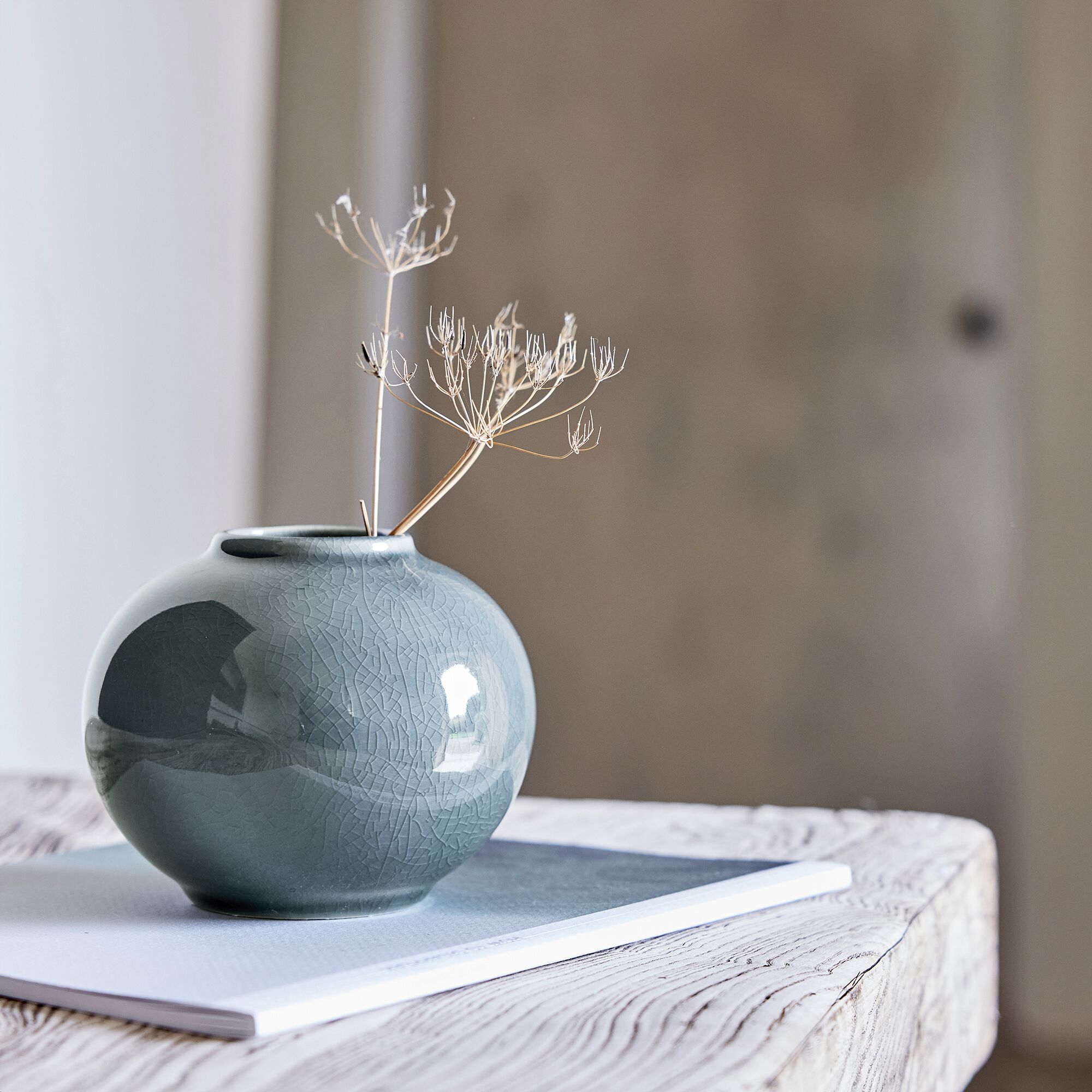 DINAN - Vase boule en grès H12cm - gris