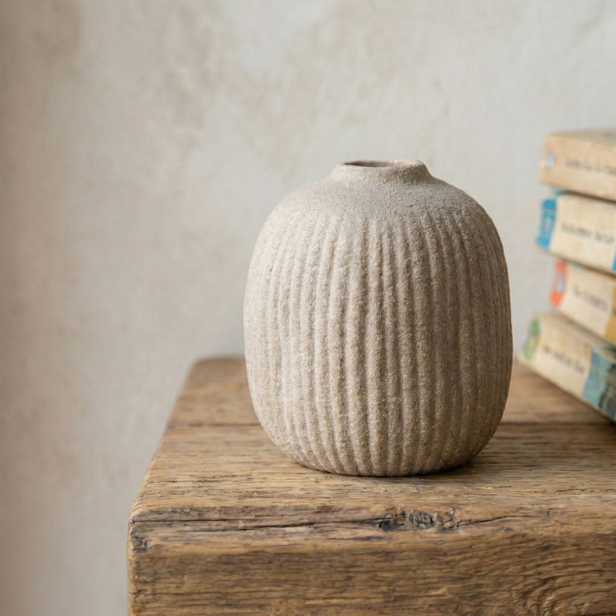 STUDEN - Vase classique en grès strié H12,5cm - blanc
