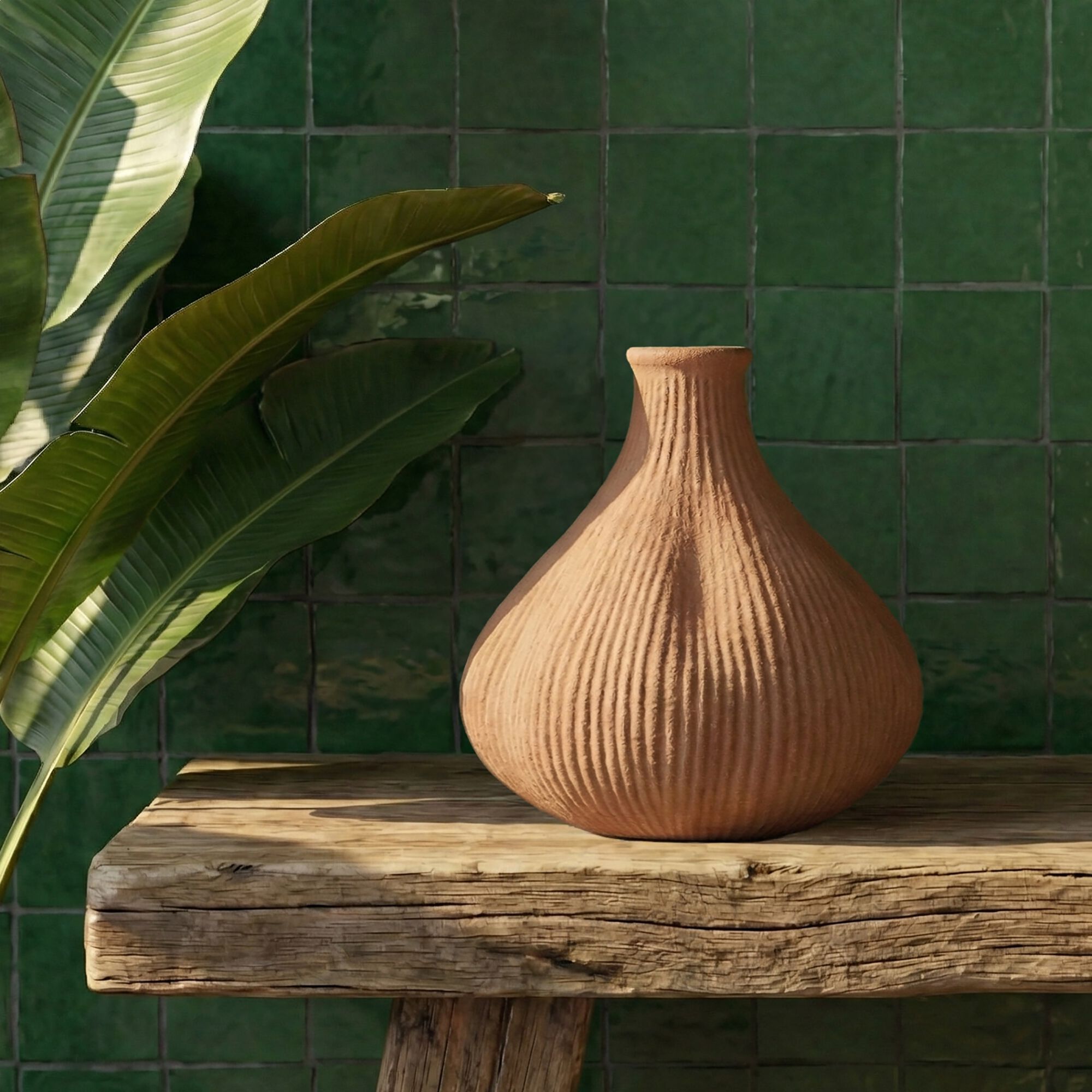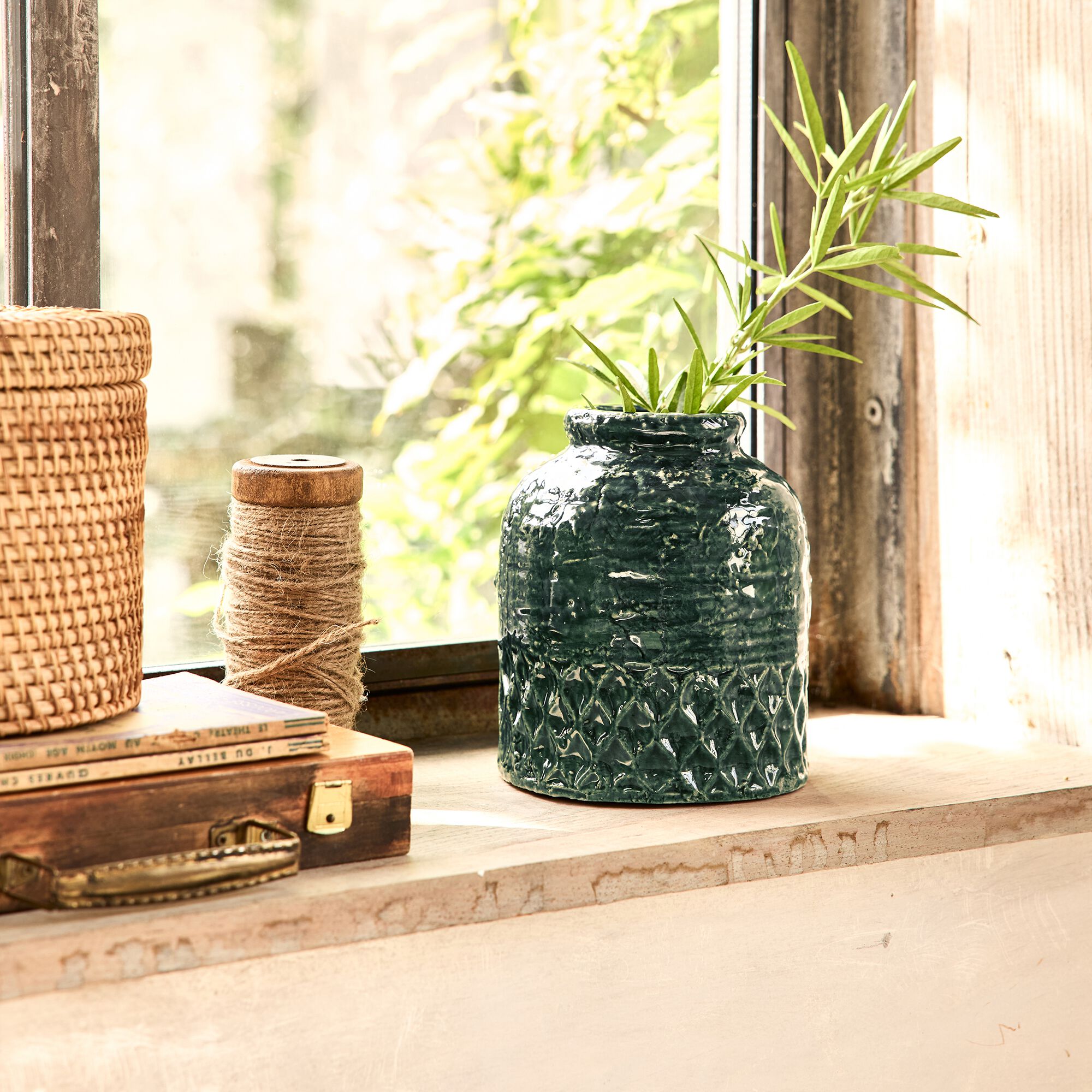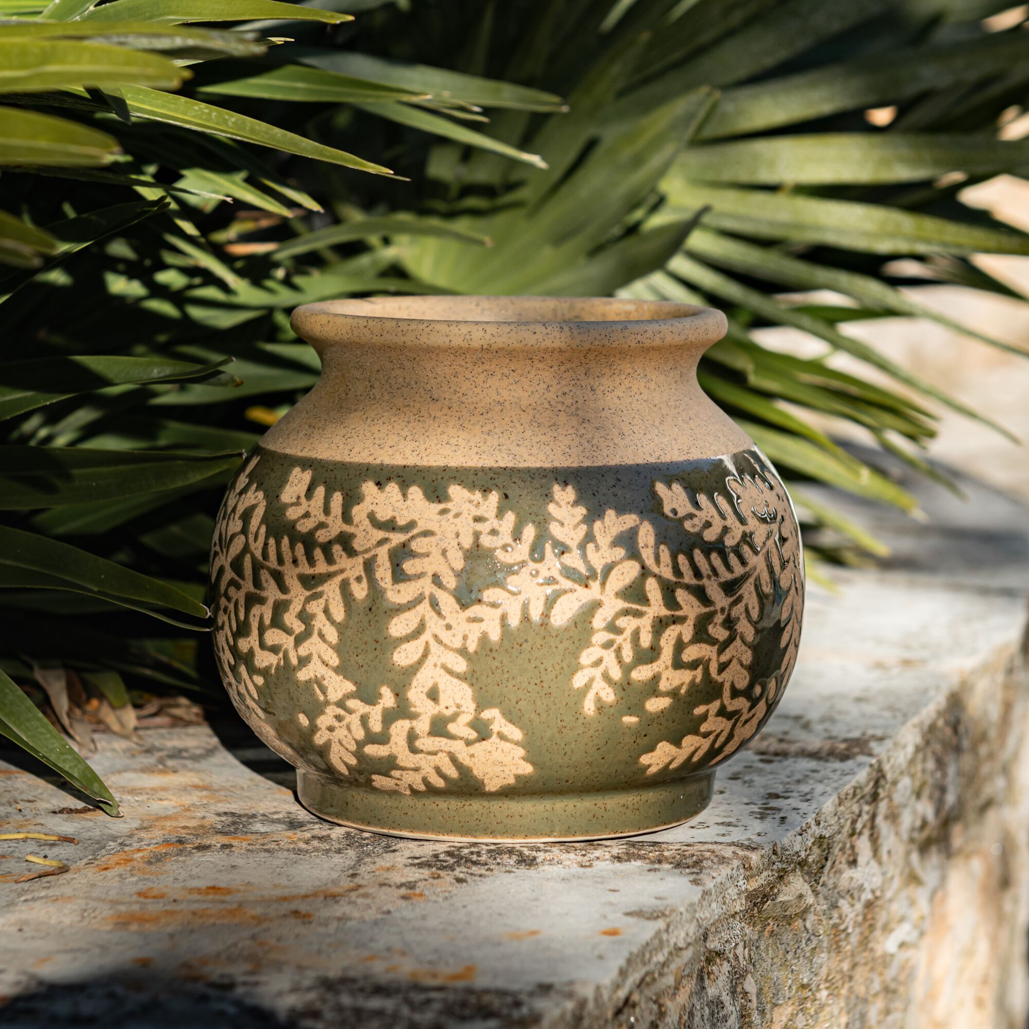 MALANS - Vase texturé en grès D13,5xH16cm - vert