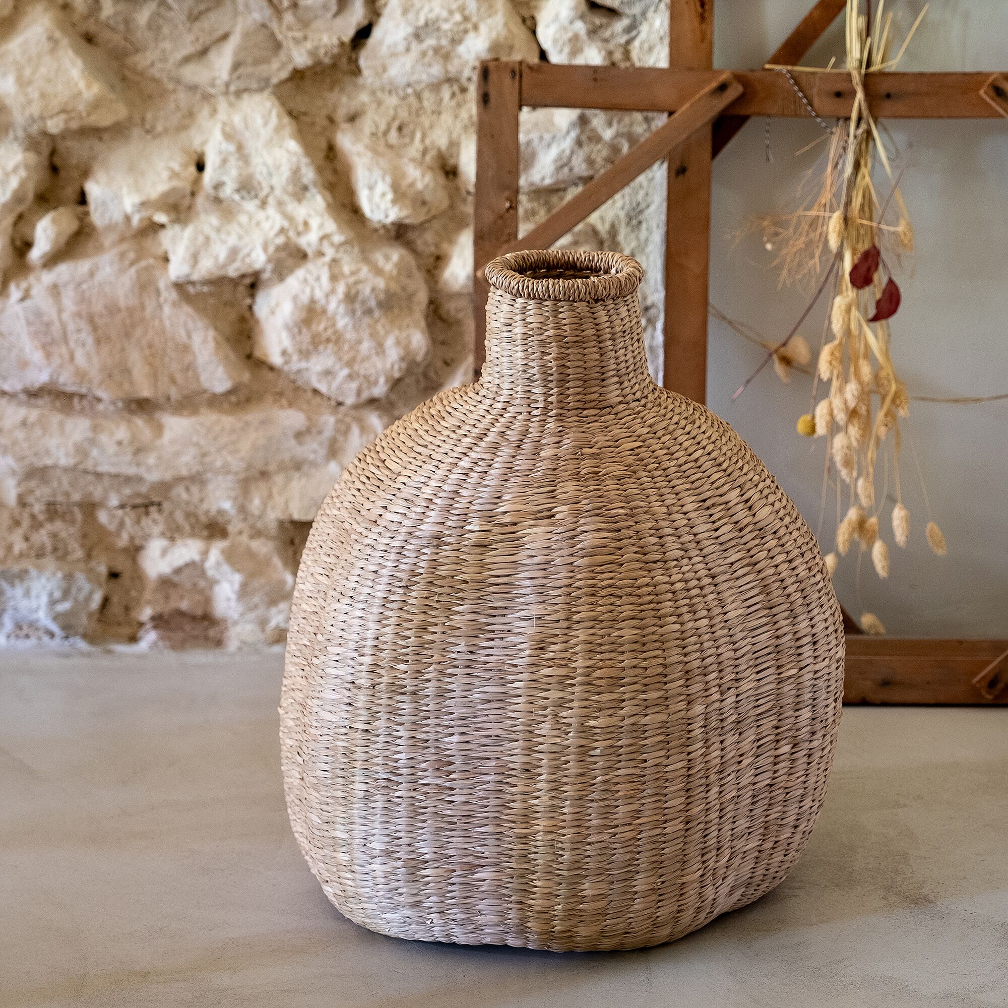 ANTELIAS - Vase boule en herbes marines tressées H46cm - naturel