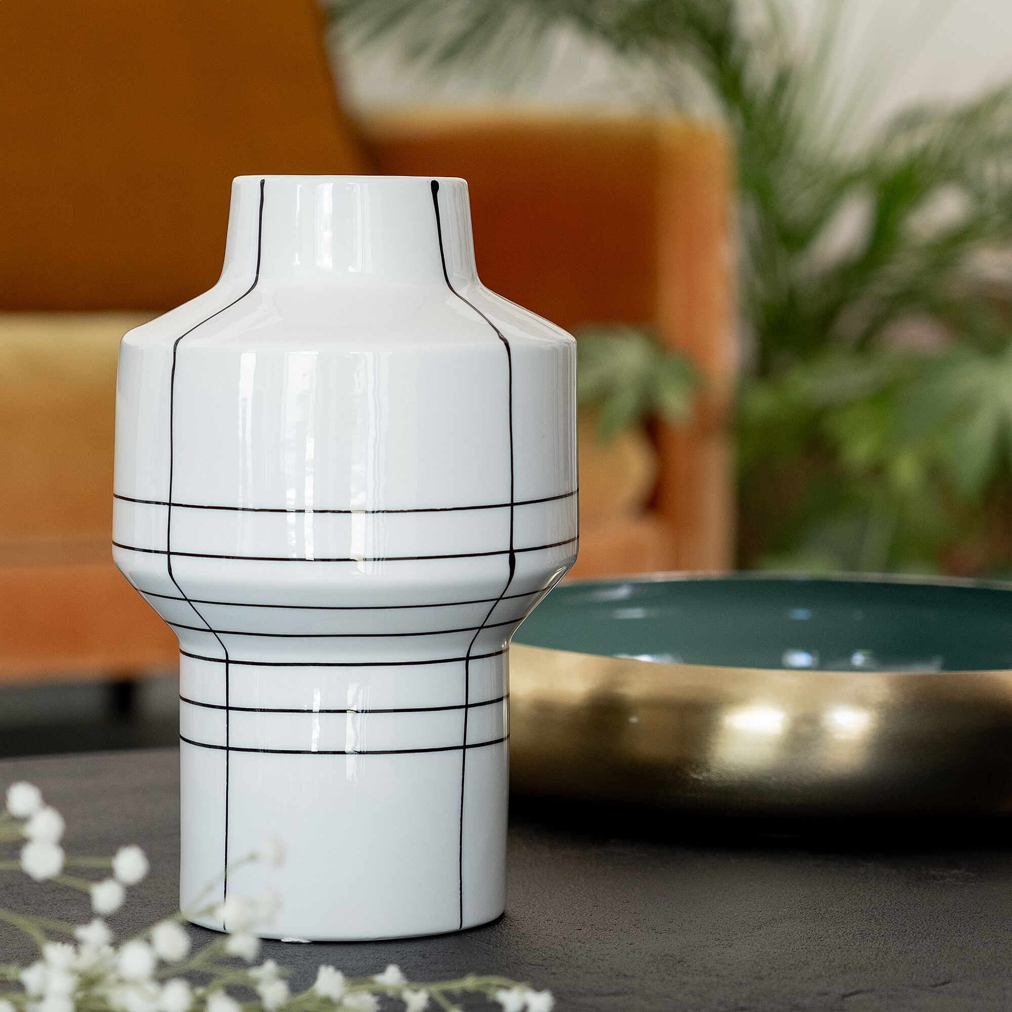 LOSSE - Vase classique en grès strié H30cm - blanc