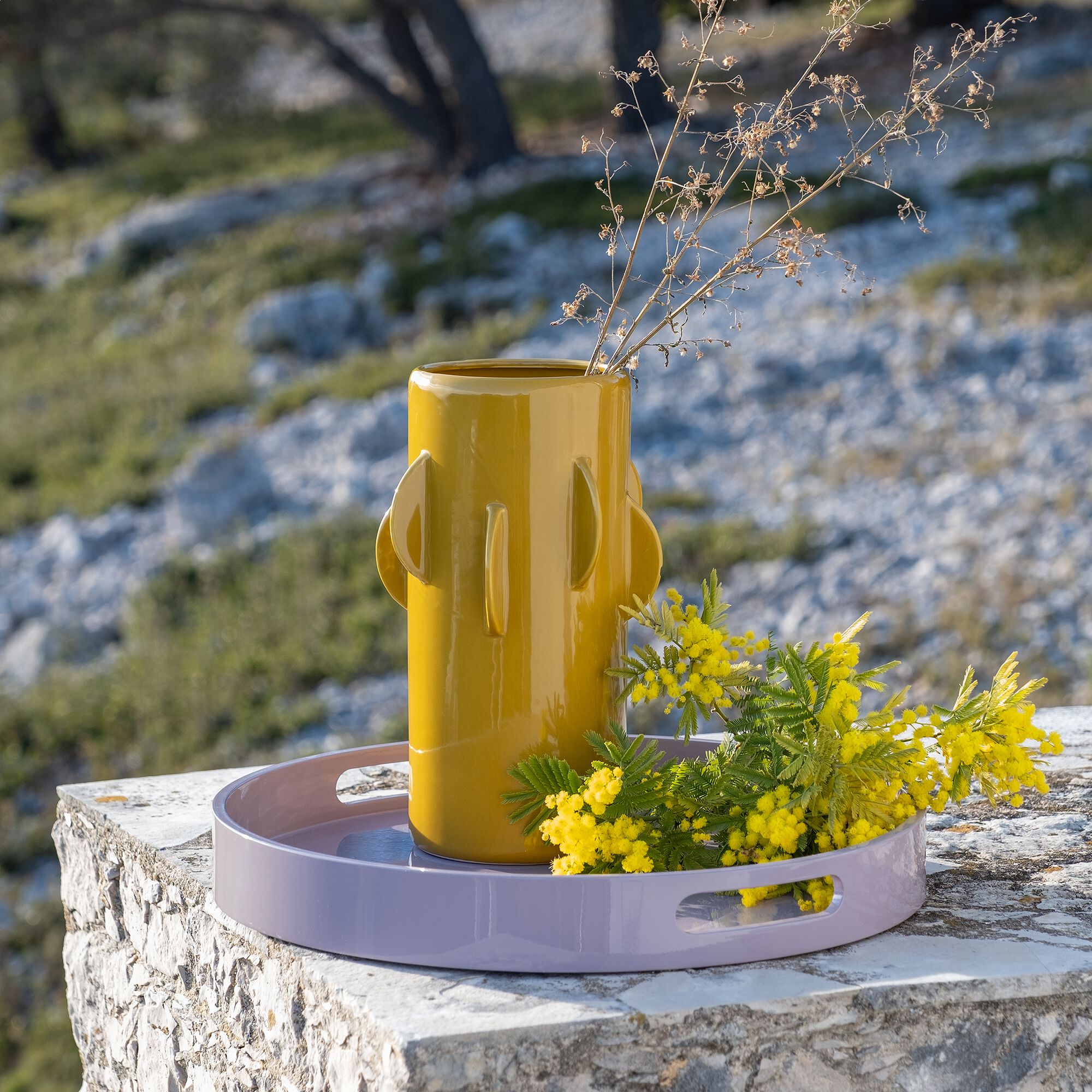 MATHA - Vase contemporain en dolomite H28cm - jaune