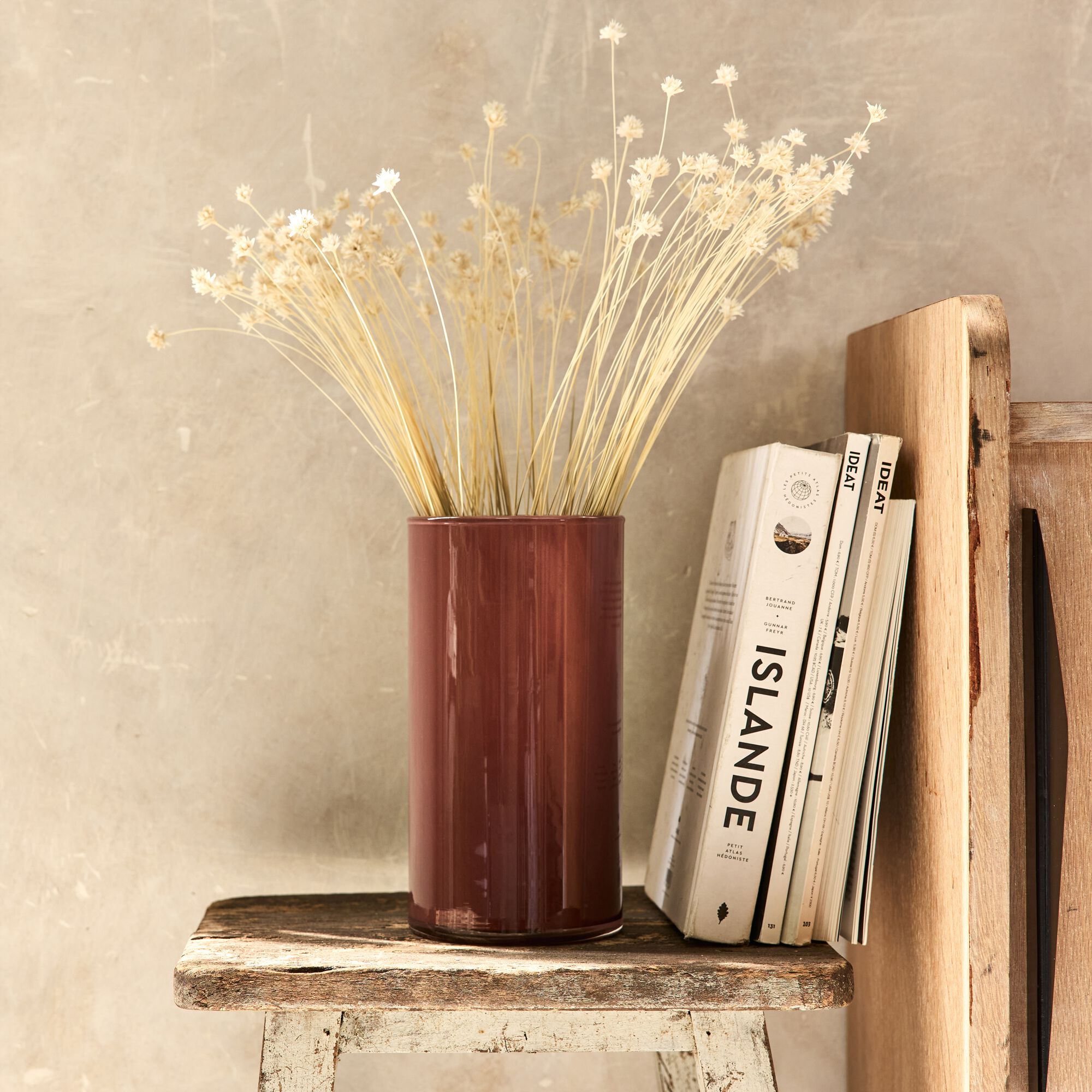 ARCOMIE - Vase tube en verre H23cm - marron