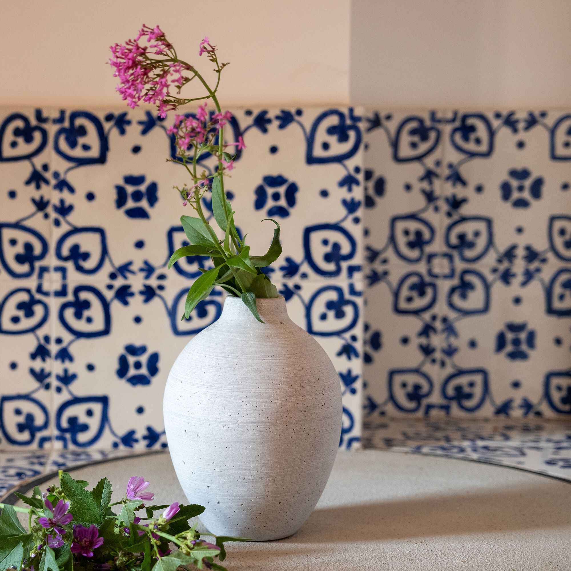 MILON - Vase contemporain en faïence H19cm - bleu