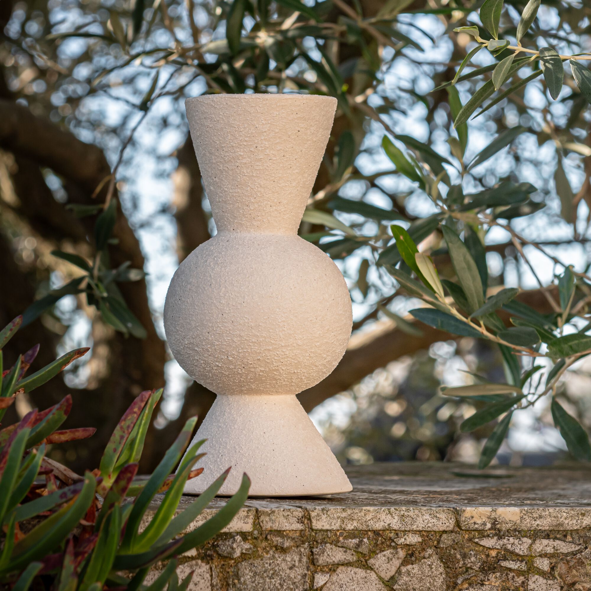 STOFFI - Vase contemporain en faïence H27,5cm - beige
