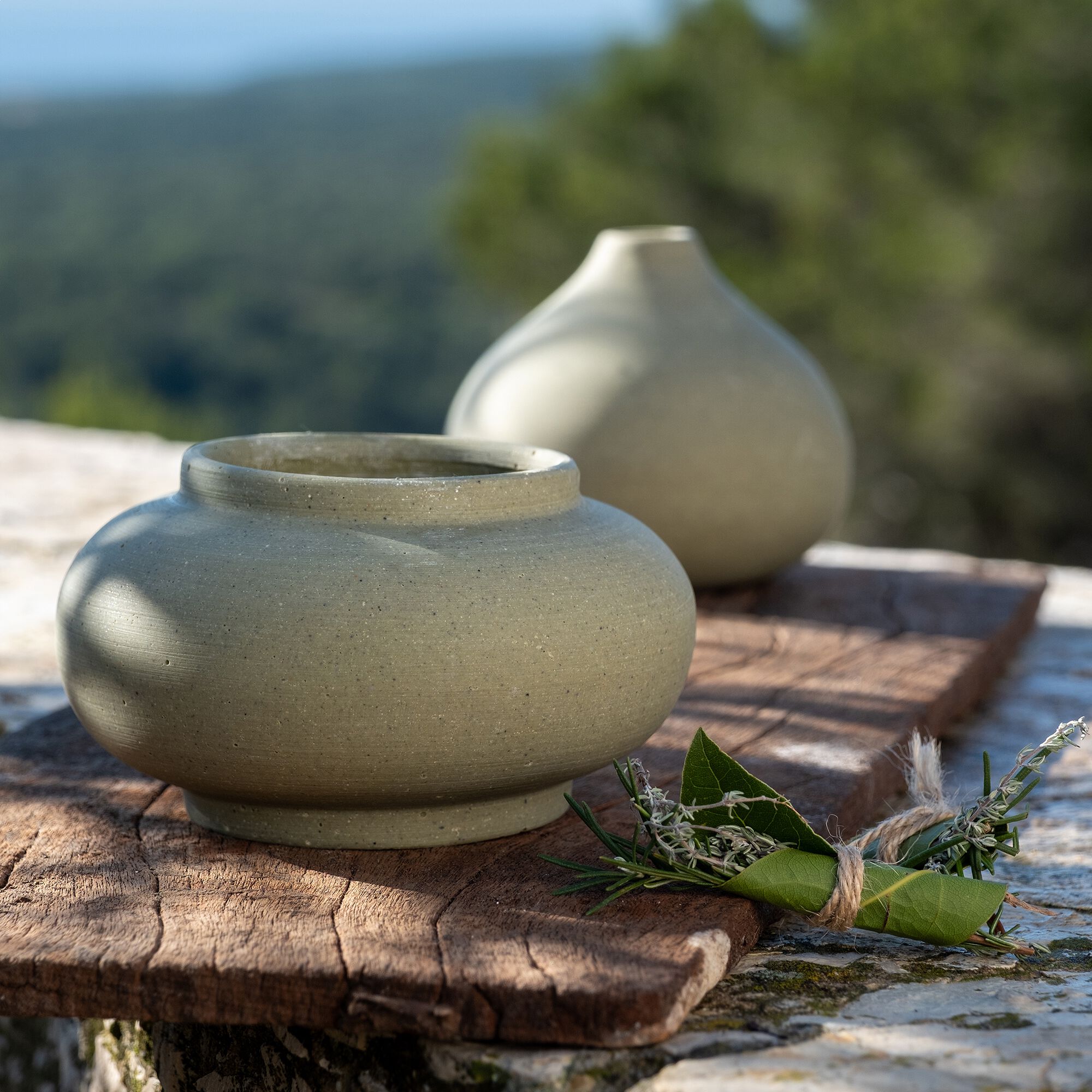DELICIAS - Vase contemporain en dolomite H17,5cm - vert
