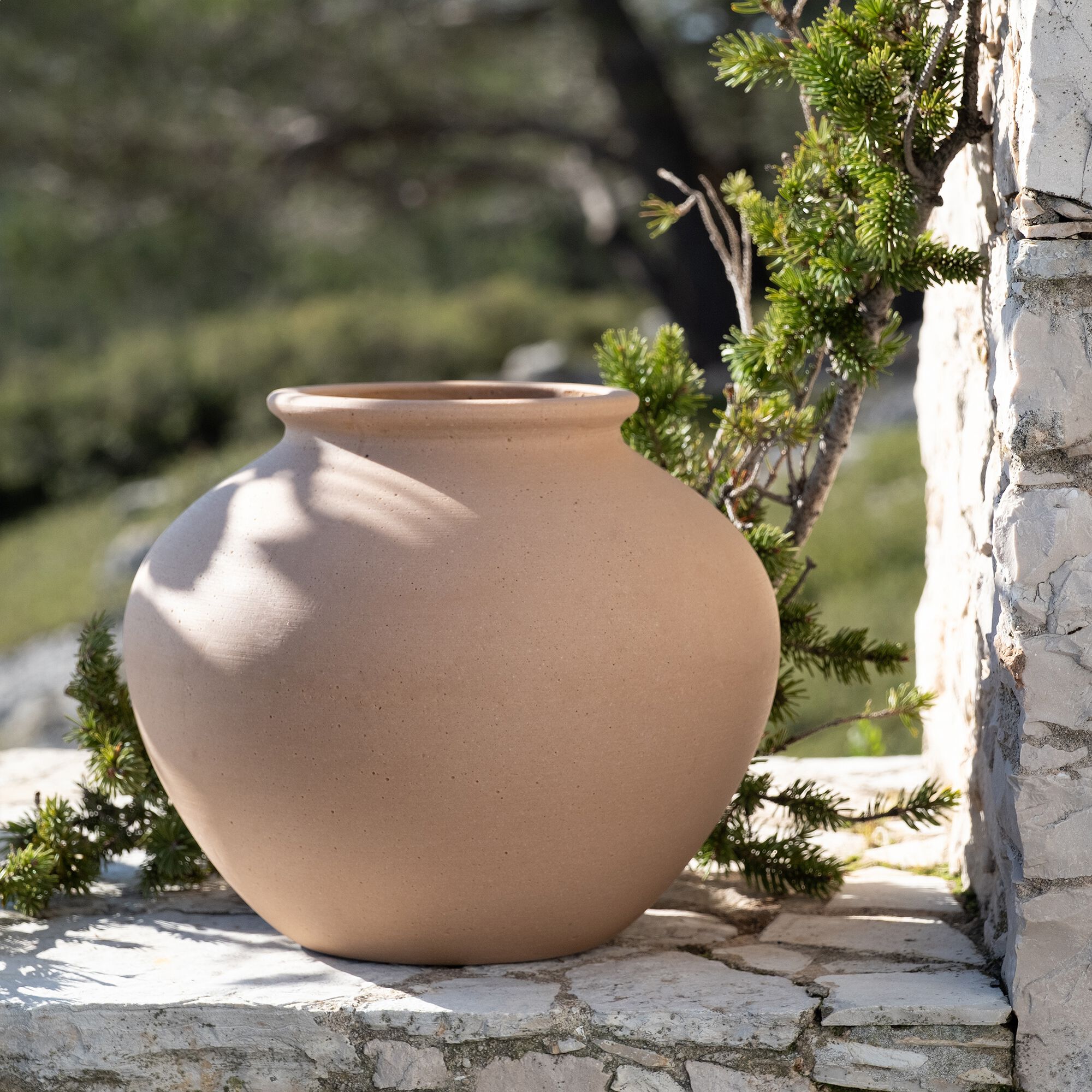 LODEVE - Vase boule en polystone H21,5cm - beige