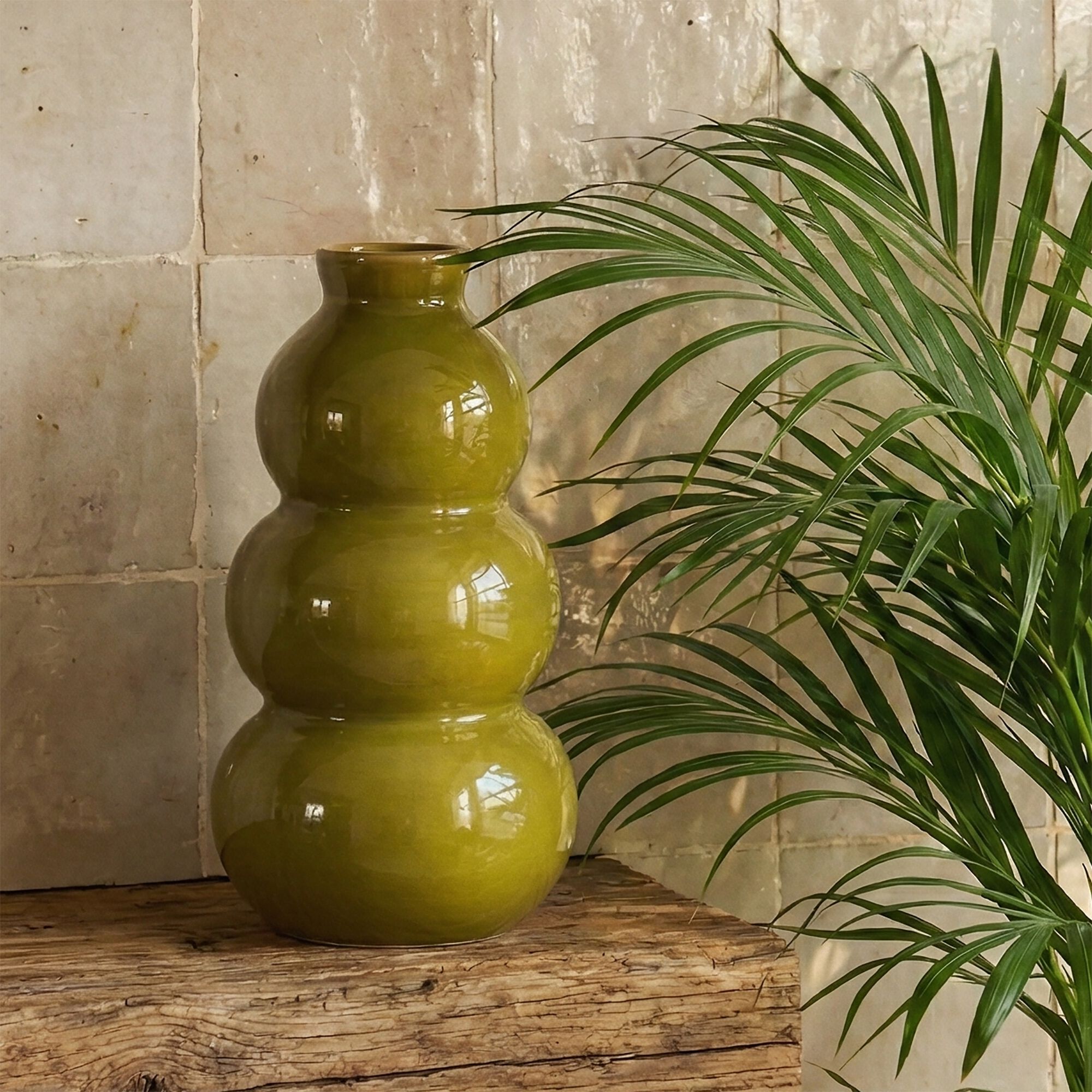 MILON - Vase contemporain en faïence H24cm - vert