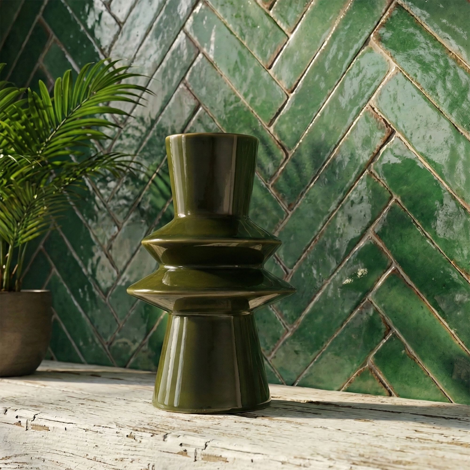 POTOSI - Vase contemporain en faïence H20cm - vert