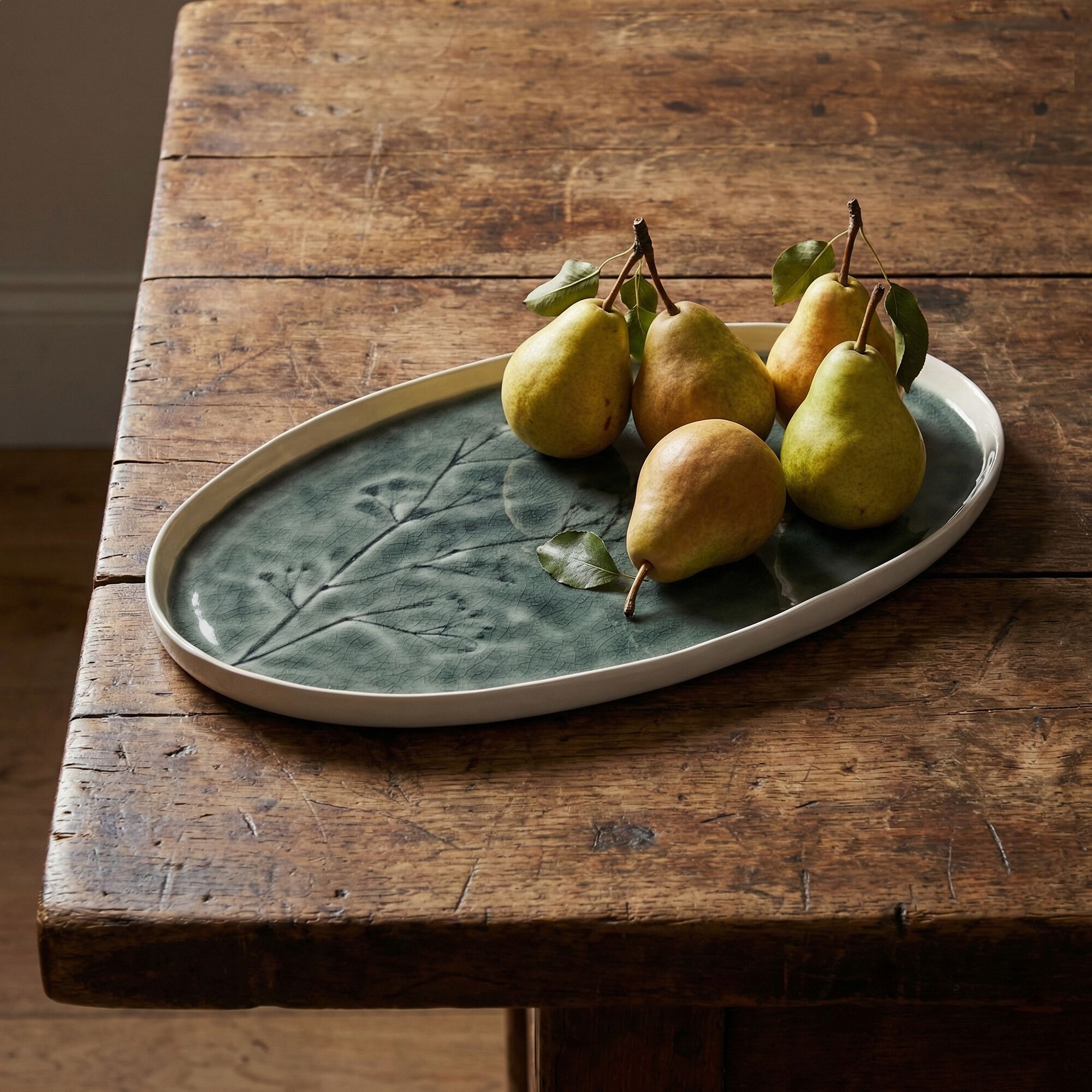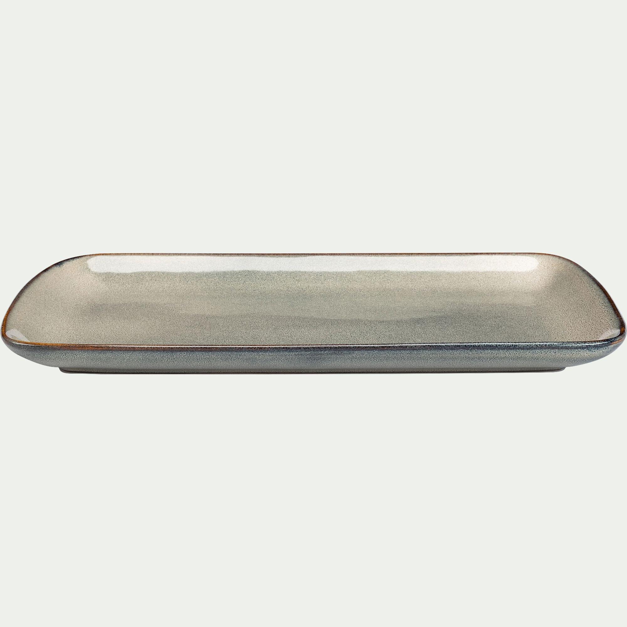 PIETRA - Plat en grès émail réactif L35cm - vert olivier